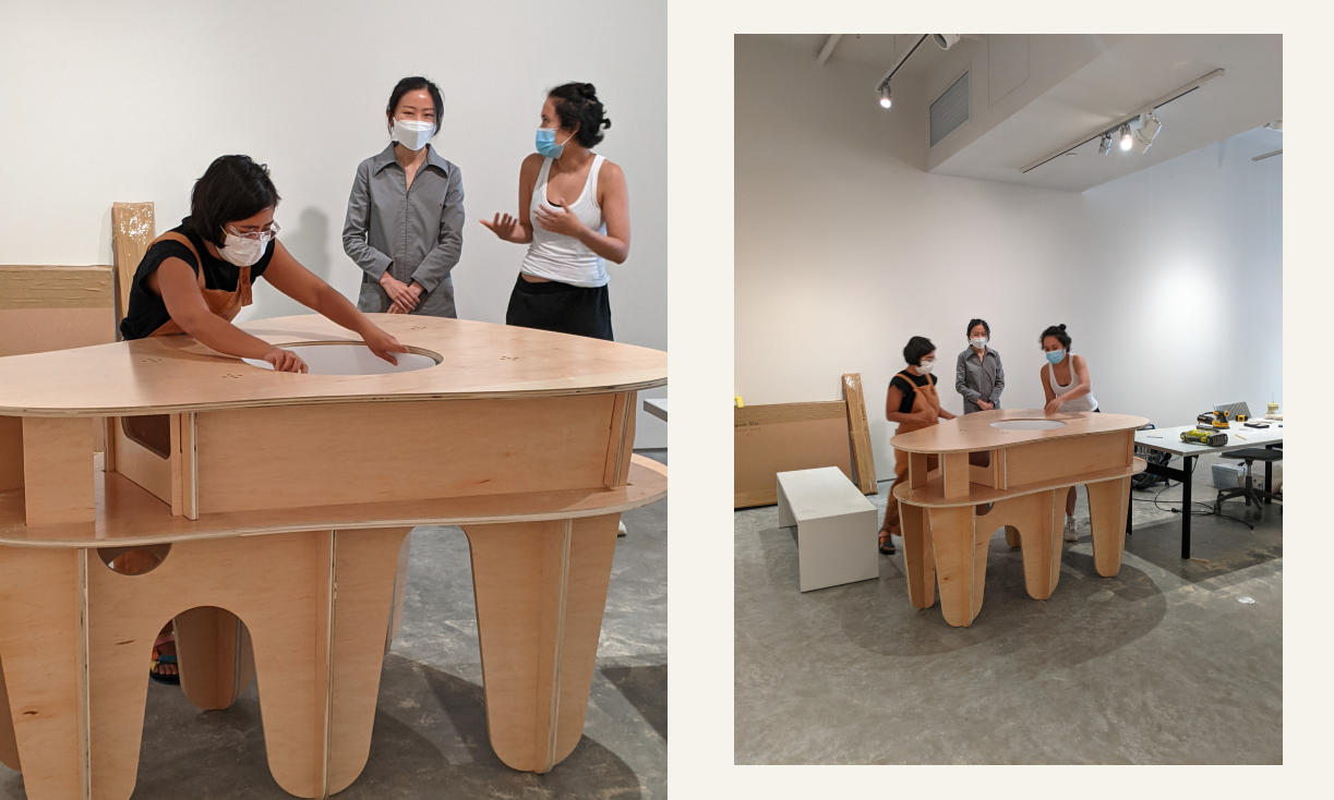 The design approach for Fertility Flowers is to create a vessel that can host the artist’s multi medium installation. I’ve created a singular vessel that could host all 3 elements (Glass, scent and film) to intersect and blend to allow the viewer to immerse and be close and personal to the artist’s multi-sensory installation. Poblador’s delicate glass sculptures informed the form of the vessel that suggest nature and femininity through the choice of material and form. It features a “video well” that aims to draw the viewer to look closely into the elaborate universe that Poblador has created.